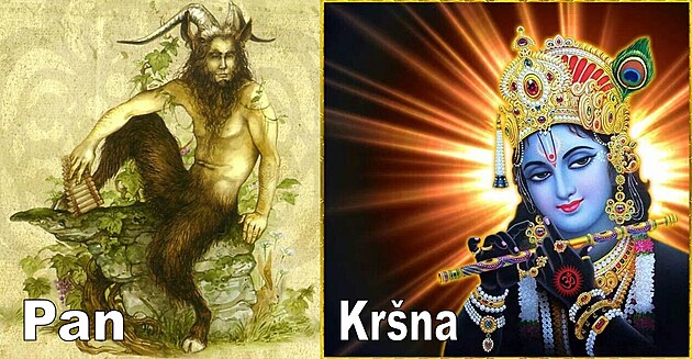 Grécky boh Pan bol považovaný za vládcu všetkých bohov. Britský okultista Aleister Crowley povedal, že boh Pan je demiurgom ('tvorcom', 'stvoriteľom'). Tajná okultná spoločnosť Fraternitas Saturni (Saturnské bratstvo) považuje za demiurga planétu Saturn. Pan býva stotožňovaný so Satanom. Bol tiež bohom lesov, lovcov a pastierov a hral na flautu rovnako ako indický boh Kršna. Kršna zvádzal ženy v lese rovnako ako Pan zvádzal nymfy. Boh či bohočlovek obdarený zázračnými schopnosťami Kršna má podobný životný príbeh ako kresťanský Ježiš Kristus, ktorý mal nadprirodzené schopnosti. V hebrejskej abecede znamená každé písmeno zároveň číslo. Ak prepíšeme do hebrejskej abecedy slovo Krišnah (Kršna) a každému písmenu priradíme príslušnú numerickú hodnotu, dostaneme číslo 666 - znamenie šelmy, solárne číslo spájajúce sa so Saturnom. Sú to tie isté božstvá uctievané v rôznych kultúrach pod inými menami. Pan = Anu = Satan = Christ (Kristus) = Krishna (Kršna).