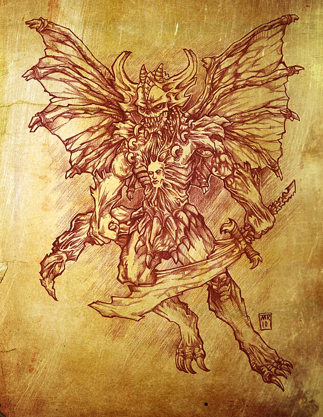 Trojhlavý "pavúčí" démon Bael alebo Baal z goetických okultných spisov zo 17. storočia.