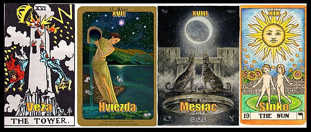 Solárny Saturn s polmesiacom máme na Rider-Waitovej tarotovej karte Osmička pohárov.