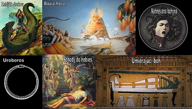 Medzi takéto archetypy patrí: Zabijak drakov, boží stĺp alebo hora bohov, nahnevaná bohyňa, Uroboros, rebrík alebo schody do nebies či umierajúci boh. Žiadny z týchto archetypov nepredstavuje prirodzené udalosti dnešnej doby. Na úsvite civilizácie už boli všetky archetypy prítomné.