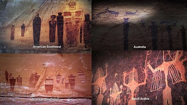Peratt vraví, že aj paličková postava s hlavou kačice, ktorá je zaznamenaná v oblastiach amerického juhozápadu či v oblastiach od Havaja po Saudskú Arábiu, je podobou plazmového výboja. Maľby zobrazujú rôzne perspektívy týchto výbojov.