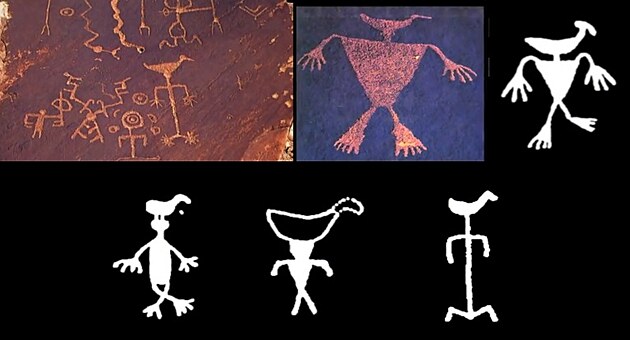 Niektoré postavy v tvare paličky majú namiesto hlavy kačicu alebo iného vtáka. Stovky takýchto variácií je vyobrazených na americkom juhozápade.