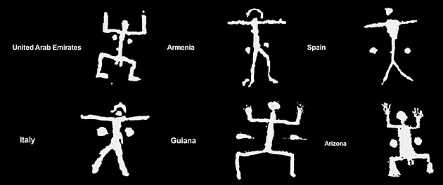 Týmto vzorom to nekončí. Niektoré paličkové postavy majú dvojicu bodiek po stranách - na každej strane tela jednu bodku. Tento vzor vidíme taktiež po celom svete.