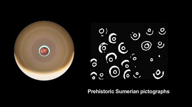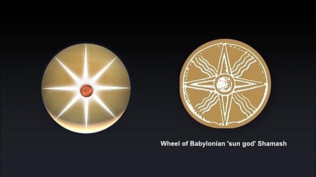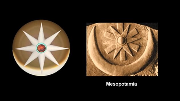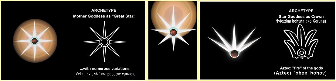 Na nebesiach visela mohutná sféra a z jej centra vyžarovala guľa obklopená zväzkom lúčov. V sumerských textoch sa hovorí o "strašnej nádhere v strede boha Ana." Kultúry celého sveta označovali túto guľu či 'hviezdu' ženským prívlastkom 'Matka bohyňa' - bola to Venuša, 'Hviezda bohyne Inanny', 'Veľká hviezda', 'Matka všetkých hviezd', 'Babylonská hviezda bohyne Ištar'. Toto bolo centrálne oko, srdce a duša prastarého slnka, oživujúca energia, sila a pýcha, koruna a štít boha-bojovníka, lúče kolesa.