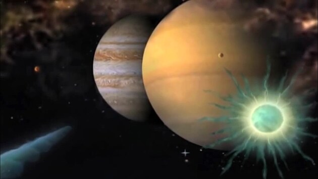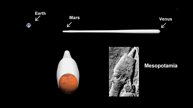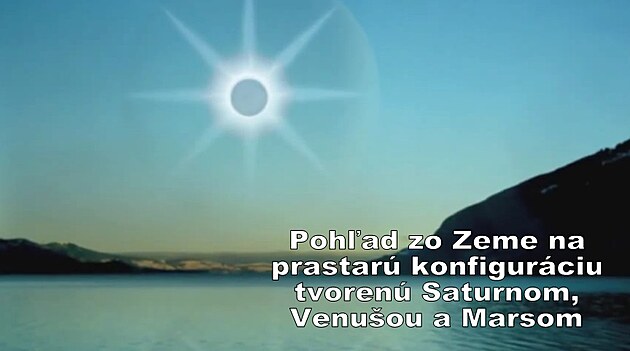 Na obrázku nižšie vidíme starú nebeskú konfiguráciu. Zľava doprava vidíme planétu Zem, Mars, Venušu, Saturn. Rozmiestnenie planét pred kozmickou katastrofou bolo iné ako dnes. Saturn, ktorý je v skutočnosti hnedým trpaslíkom, bol oveľa bližšie k Zemi, žiaril a nemal prstence.