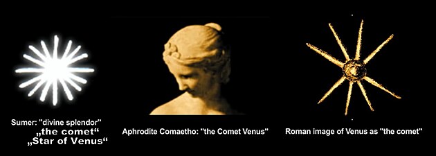 Bohyňa Venuša bola kométa, v sumerských textoch opísaná ako 'božská nádhera'; bola to 'Hviezda Venuše'. Bohyňa Afrodita je 'Kométou Venušou'. Rimania zobrazovali Venušu ako 'kométu'.