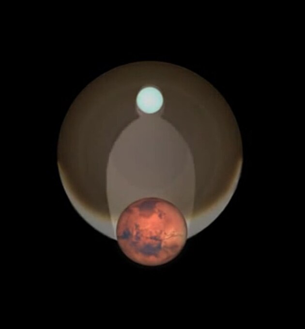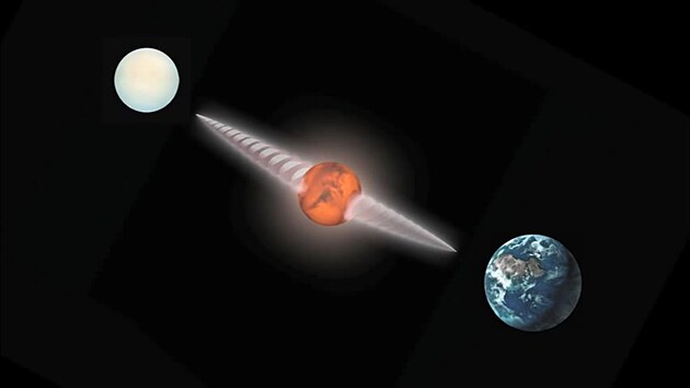 V niektorých fázach pohybu Marsu, kozmický prach a elektrická plazma prúdiaca medzi Marsom a Venušou sa stali viditeľné pre pozorovateľov zo Zeme.