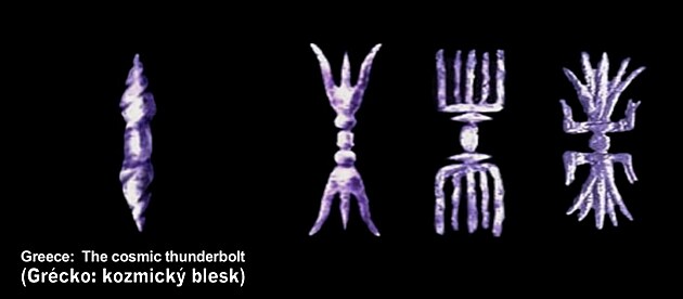 Tvorba plazmových výbojov je spojená s nebeskou katastrofou a staroveké maľby zvláštnych postáv s bodkami po stranách majú tieto elektrické javy reprezentovať.