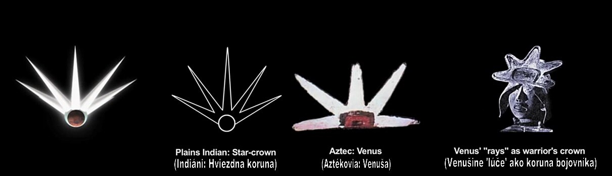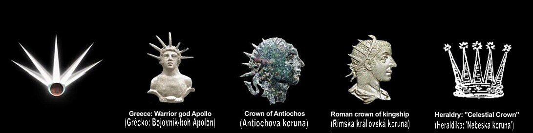 Dokonca aj vďaka malým zmenám v tomto prachovo-plazmovom lúči bolo možné vidieť túto formáciu, ktorá tvorila osobité odlišnosti v zjave planetárnej konfigurácie. Takto vznikli podoby korún ako egyptská 'Biela koruna', sýrska 'Baalova koruna', mezopotámske tvary korún, egyptská 'Červená koruna', perzská 'Mithrova koruna', mexická 'Olmécka koruna' či sardínska koruna. Králi v starovekých časoch nosili šišaté koruny rôznych tvarov. Starovekí kňazskí kronikári vedeli, že tieto koruny sú súčasťou rúcha kozmického bojovníka, prototypu bojovníka-kráľa na Zemi.