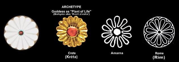 Astronomická tradícia pomenovala centrálnu hviezdu s lúčmi v strede kruhu Venuša, matka-bohyňa, a temnejšiu, červenkastú sféru nachádzajúcu sa pred Venušou nazvali Mars, kozmický bojovník. Príbehy bohov sú symbolickými príbehmi planét.