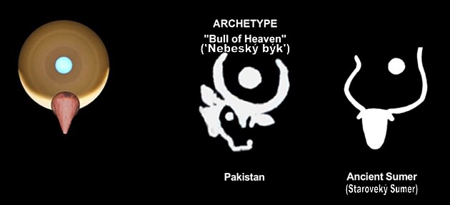 Mýty o nebesia osvetľujúcom kozmickom obrovi zahŕňajú aktívnu podobu boha-bojovníka. Jeho roztiahnuté ruky znázorňujú to isté ako rohy Nebeského býka, žiarivý polmesiac.