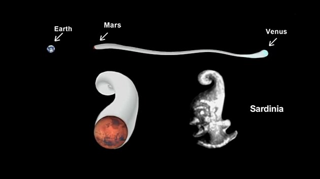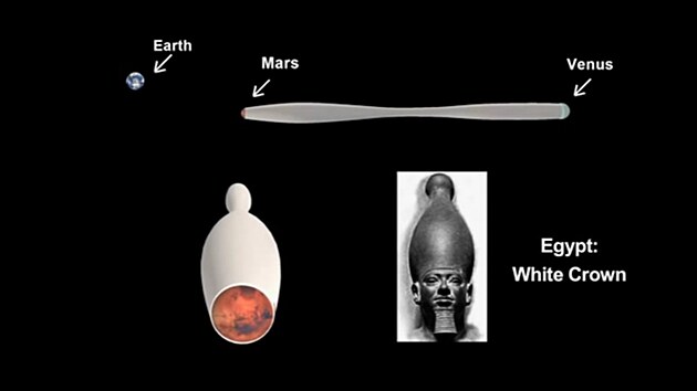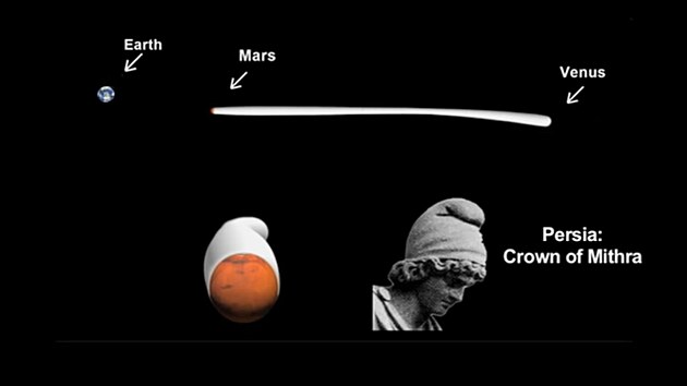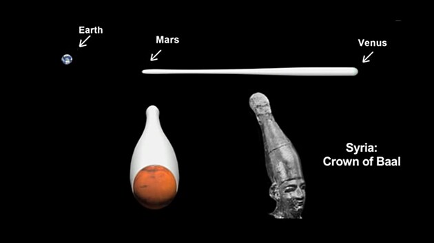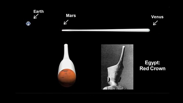 S narastajúcou nestabilitou a vychyľovaním sa z osi, lúč spájajúci Mars a Venušu tvoril špirálu. Toto je matka-bohyňa, centrálne oko, srdce a duša prastarého slnka, ktorá sa teraz javila ako zatočená kučera vlasov. Egyptské texty spomínajú "kučeru vlasov, ktorá bola zakrútená" alebo že boh Re mal "žiaru na svojej kučere vlasov."