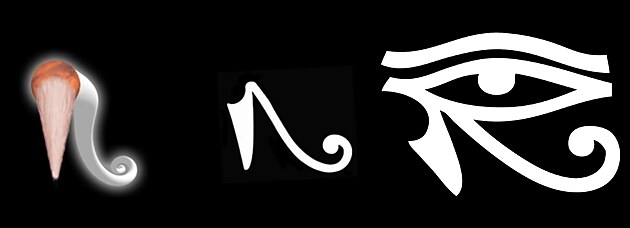 Zatočený dych života má mnoho významov - napríklad v pozícii na obrázku nižšie sa stal súčasťou egyptského 'oka boha Hora'.