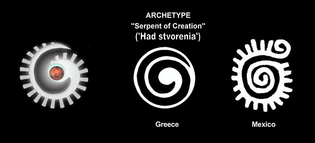 Pri fáze neporiadku v nebeskej konštelácii planét vznikala špirálovitá forma útvaru, ktorú symbolizuje 'Had stvorenia'. Bola to valcovitá ohrada matky-bohyne, materská vlasť na oblohe, súčasť starovekej legendy o stvorení. Mýtický domov bohov a hrdinov sa nachádzal vo vnútri ohrady tvorenej telom nebeského hada alebo draka. Vyvíjajúce sa podoby sú preukázateľnými fázami života matky-bohyne, masívne ignorovanými, ale symbolicky znázornenými starými kultúrami.