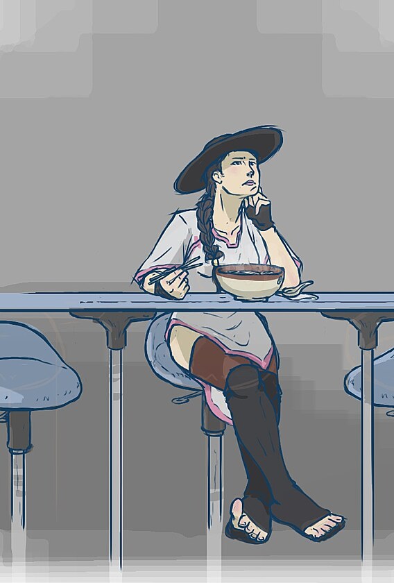 Keď bola La Kunga na ceste do centra, kde sa cvičí joga, prišla jej správa od čierneho mága a neboha Višnuha, či nejde s ním chlastať. La Kunga spomalila svoju chôdzu a začala silno váhať, či má ísť cvičiť jogu alebo či podľahne Višnuhovmu magnetickému vplyvu a pôjde sa opiť. Napokon urobila kompromis: šla najskôr cvičiť jogu a potom sa šla opiť s Višnuhom tak, ako to majú obaja radi.