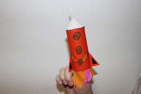 Kluci jistě ocení maňáska-raketu. Budou potřebovat barevný karton, lepidlo, nůžky, pastelky, špejli a krepový papír na oheň.