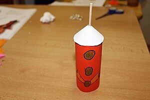 Přikládám fotografie, které ukazují, jak jsme vyráběli maňásky opičku a raketu.