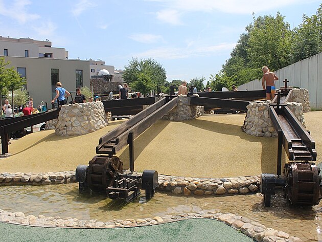 Ve vnější části, která je otevřena za pěkného počasí, jsme vyzkoušeli další super atrakce. Jelikož teplota dosahovala třicítky, rádi jsme si pohráli ve Vodním světě, který obsahuje vodní atrakce jako například Archimédovy šrouby, pumpy, stavidla, vodní kola nebo třeba jezírko. Venku je také kolotoč nazvaný Kejval a závodní okruh na šlapacích kárách, který zaujal hlavně mé kluky. Nejzajímavější atrakcí byl Ptačí rozlet. Děti na něm překonaly strach z výšky a seskočily volným pádem do měkkého vzduchového polštáře. Vše za asistence obsluhy, která jim ochotně poradila.