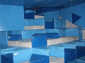 Ukrývá je to správné slovo, neboť ne všechny atrakce jsou viditelné na první pohled nebo na fotografiích. Ty nejlepší jsou ukryté pod zemí a my jsme si připadali jako živočichové v systému podzemních katakomb, v nichž lze donekonečna hrát hru na schovávanou, kterou děti tolik milují. Kde že jsme to byli? V BRuNO family parku v Brně. V parku je celkem přes 40 atrakcí a je rozdělen na vnitřní a venkovní část. Vnitřní část obsahuje obrovský prolézací labyrint, 38 metrů dlouhý obří tobogán nazvaný Tenké střevo, Brunův komín, blázinec, dětmi oblíbený ptačí přelet, autodrom, banánové bludiště, moře s lodičkami, temné bludiště, a také vyhlídku pojmenovanou Čapí oko. Mě, jako dospěláka, zaujala nejvíce právě tato vyhlídka. Po vyšlápnutí několika pater jsem na vlastní oči uviděla, co Čapí oko vlastně je. Jde o unikátní vyhlídku s prosklenou podlahou ve výšce 22 metrů. Hned mě napadlo srovnání se skleněným skywalkem z rozhledny Valašky na Pustevnách. Čapí oko je větší a nevidíte z něj panoramatické Beskydy, ale Brno. Z rozhledny Čapí oko jsem viděla téměř celé Brno, bylo nádherné počasí a kochala jsem se pohledem asi půl hodiny. Nastal čas zjistit, kde mám děti. Dolů jsem se mohla dostat buď spletí labyrintu, sestoupením sedmi výškových pater nebo sjezdem tak zvaným Tenkým střevem, což je nejdelší vnitřní tobogán v Česku.