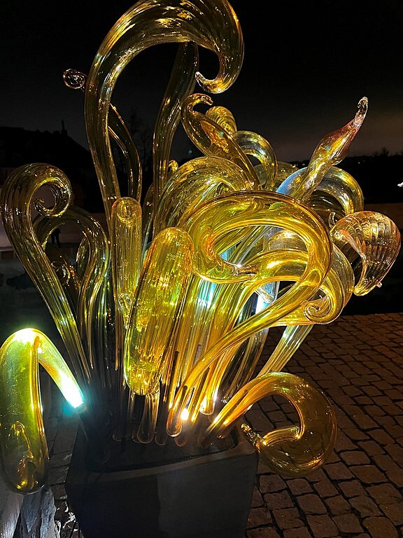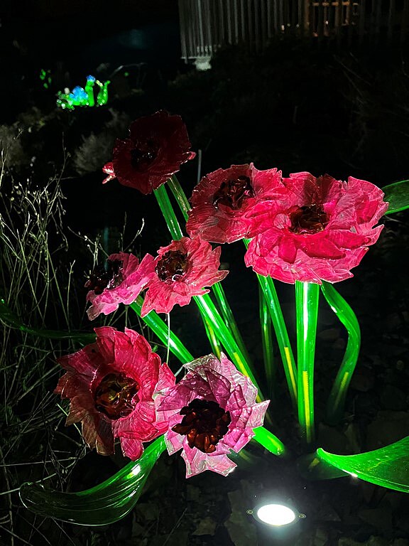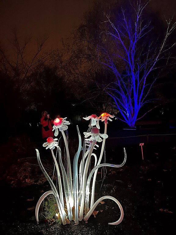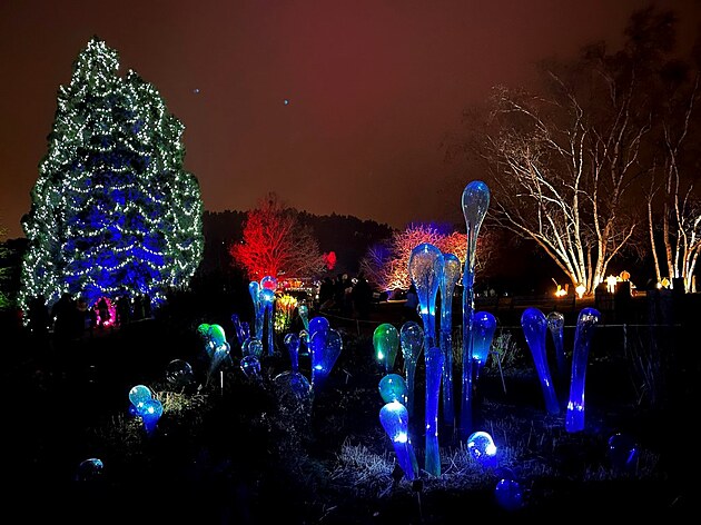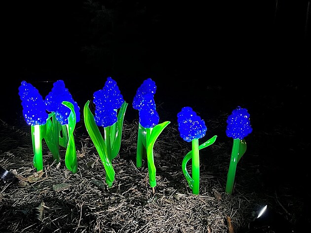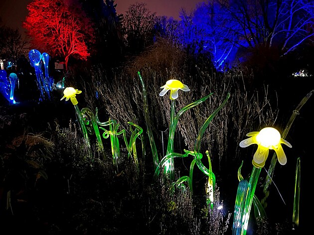 Procházka mezi nasvícenými skleněnými květy