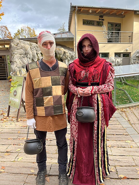 Poslední říjnovou sobotu panovala v olomoucké zoologické zahradě strašidla, nadpřirozené bytosti, duchové a jiné hrůzostrašné kreatury. Předdušičkový víkend se nesl v duchu halloweenské atmosféry a pracovníci zoologické zahrady si i letos dali záležet na detailně propracované výzdobě. Na začátku akce jsme viděli šermířské vystoupení a pak už jsme se vydali podívat na zvířátka. Těšili jsme se na surikaty, hrabáče kapského, klokany, binturongy, vlky i pandy. Cestou jsme navštívili tematické stánky související s Halloweenem a potkávali strašidla. Vyzkoušeli jsme i perfektně připravené strašidelné stezky. Strašidelné stezky byly letos dvě. Jedna pro menší děti, druhá pro starší návštěvníky. Zúčastnila jsem se té pro starší a olomouckou zoo jsme opouštěla za zvuku motorové pily…