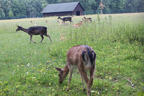 Zámek je z jedné strany obklopen rozsáhlým parkem. Děti neodolaly dřevěným prolézačkám a houpačkám. Chtěli jsme si dát něco dobrého na zub, ale hospůdka u dřevěného hřiště nás nezaujala a navíc v ní nenabízeli kromě nápojů nic víc než párek v rohlíku. V parku jsme objevili Loděnici, kde je možné zapůjčení loďky či šlapadla a projížďka slepým ramenem řeky Olše. Pár kroků odtud je úžasná obora s daňky, kteří se od dětí nechají velmi rádi nakrmit. K této části výletu již mohu přiložit fotografie, a tak si můžete udělat obrázek sami.