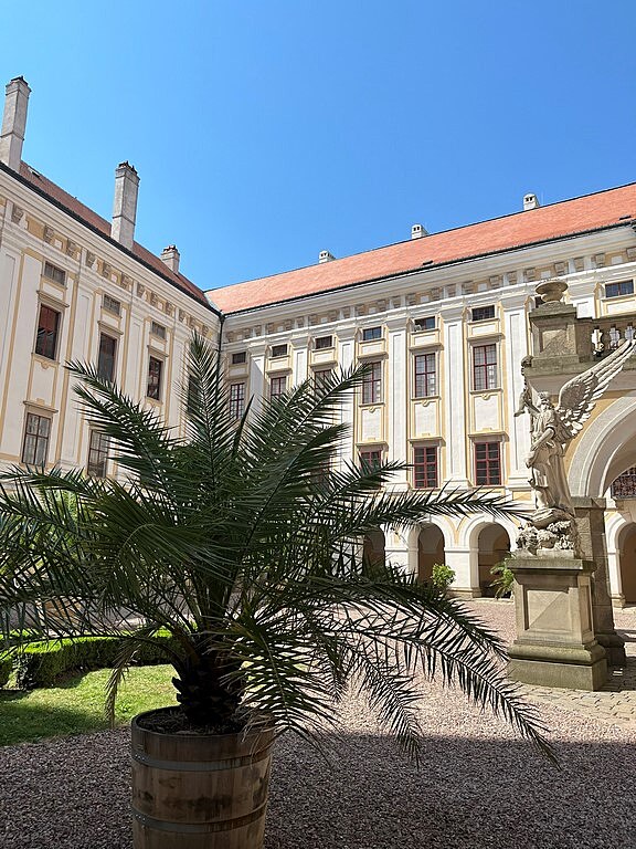 Arcibiskupský zámek v Kroměříži je zapsán na Seznam světového přírodního a kulturního dědictví UNESCO. Tak to vypadá, že pro letošní prázdniny jsme se rozhodli navštívit několik takovýchto památek. Arcibiskupský zámek v Kroměříži nám byl známý už tím, že se zde natáčely významné filmy, z nichž bych jmenovala například významné dílo světové kinematografie, film Amadeus. Z několika prohlídkových tras, které mají na zámku na výběr, jsem se rozhodla pro trasu reprezentačními místnostmi.
