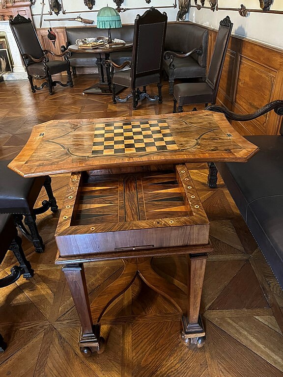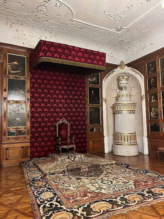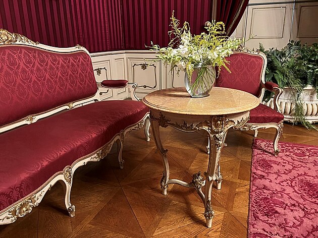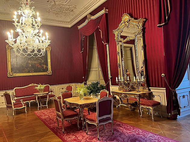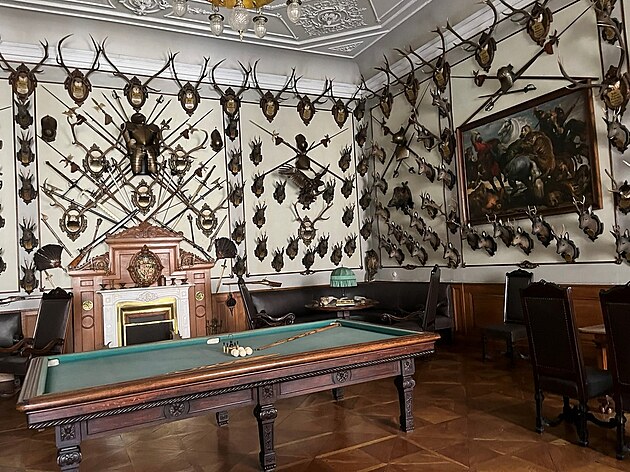 Trasa začala prohlídkou Loveckého sálu. Tento sál byl přehlídkou loveckých trofejí, vzácných středověkých zbraní a plnil i funkci herny. V tomto sále mě nejvíc zaujaly dva herní stolky a veliký kulečníkový stůl. Dále jsme prošli přes Trůnní sál, Carský sál, Růžový pokoj a Sněmovní sál. Zajímavostí je, že v Carském pokoji přijímal roku 1885 hosty ruský car Alexandr III. Mezi nejkrásnější a největší sály na zámku patří bezesporu Sněmovní sál neboli Velká jídelna. Zasedal zde Ústavodárný říšský sněm v roce 1848.