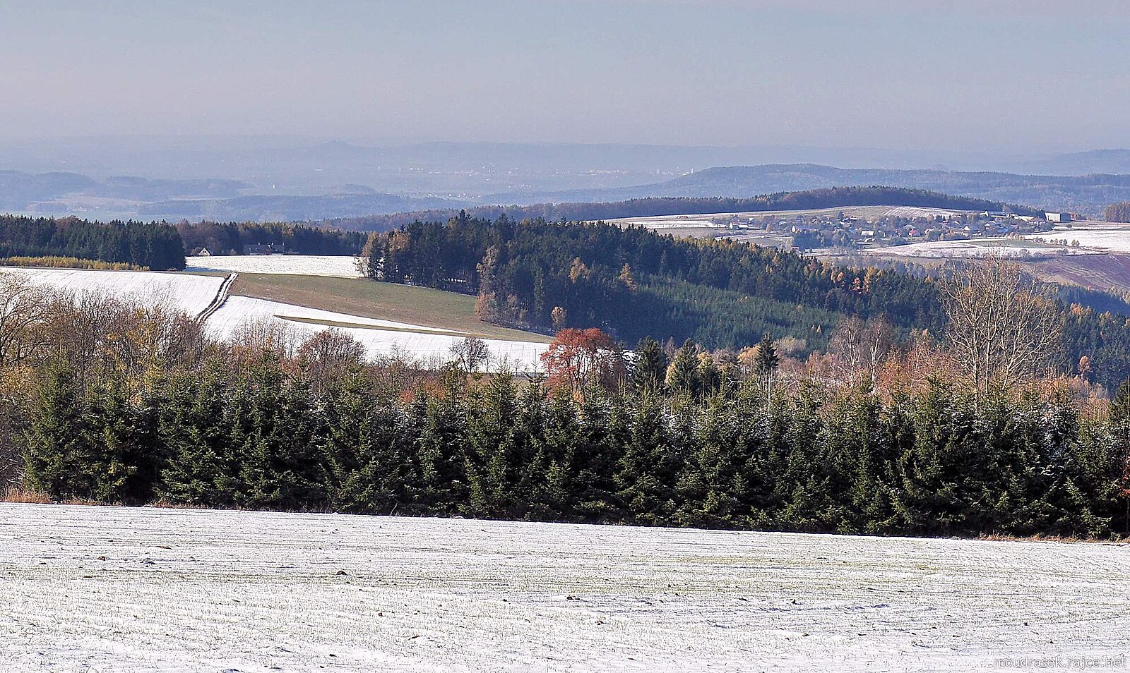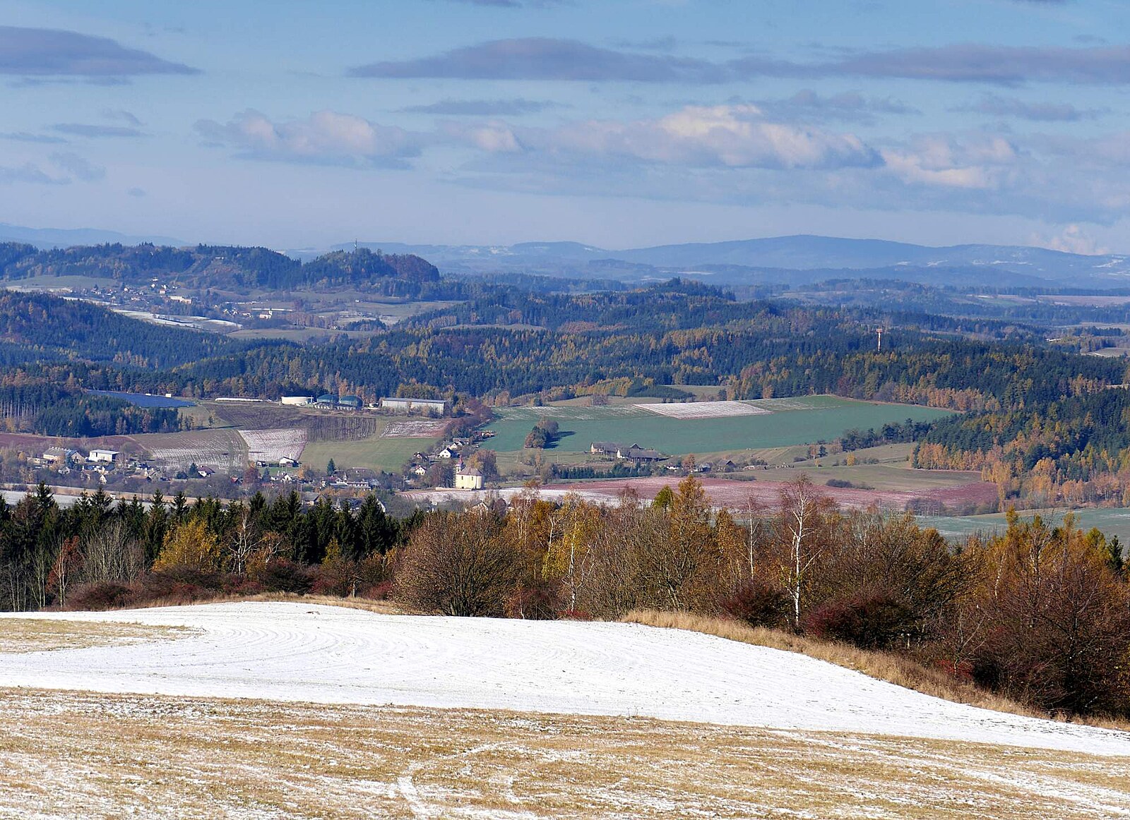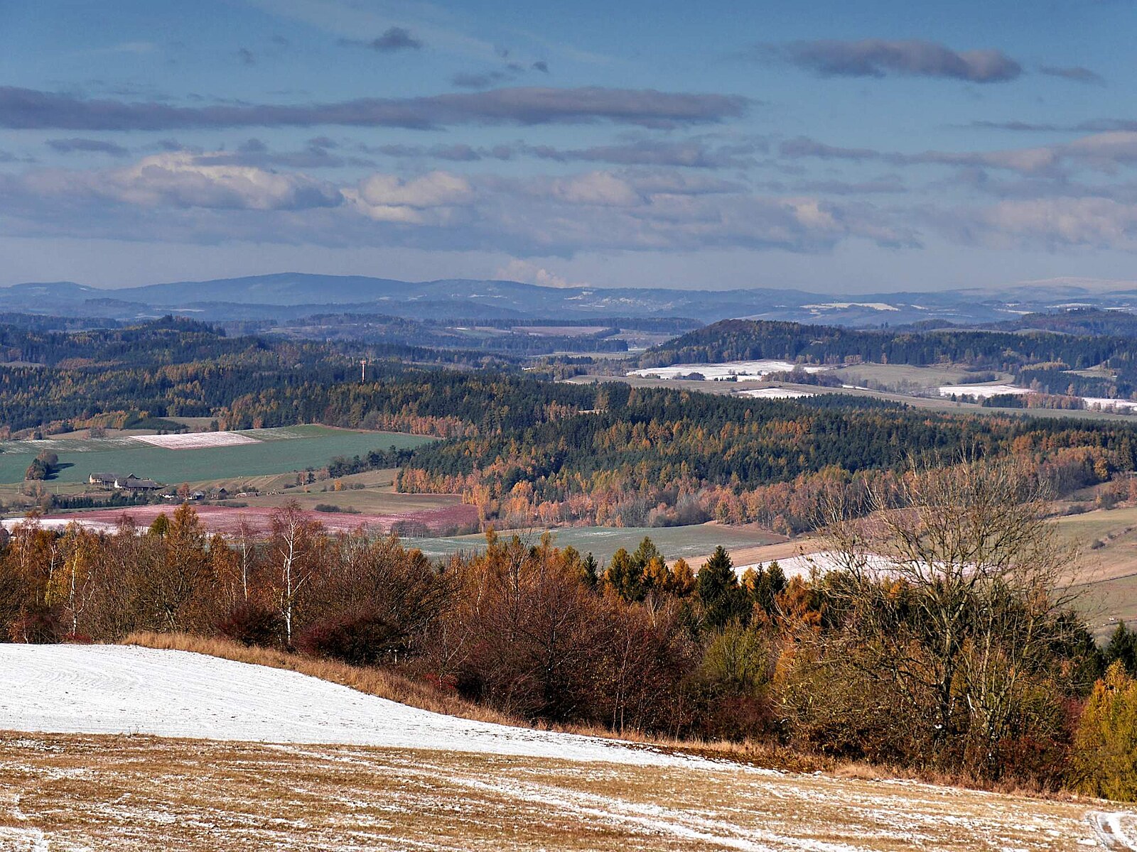 Výhled ze Zvičiny na Krkonoše a Podkrkonoší