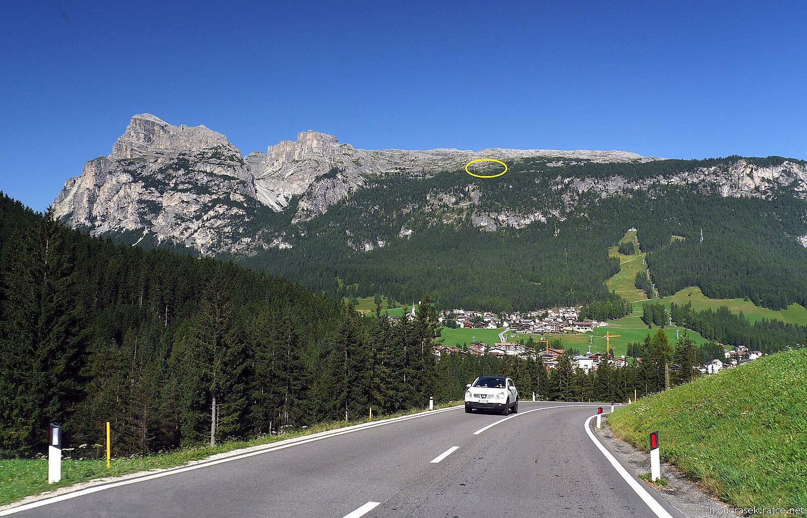 Přibližná poloha boudy Gardenacia - pohled ze silnice SP-37 pod Costadedoi