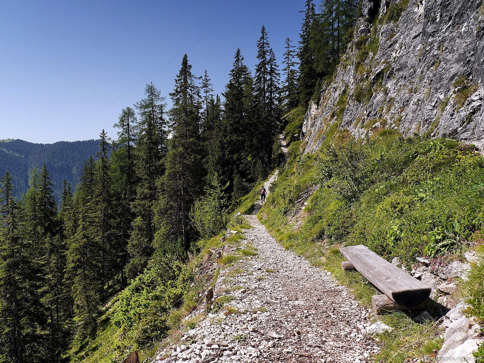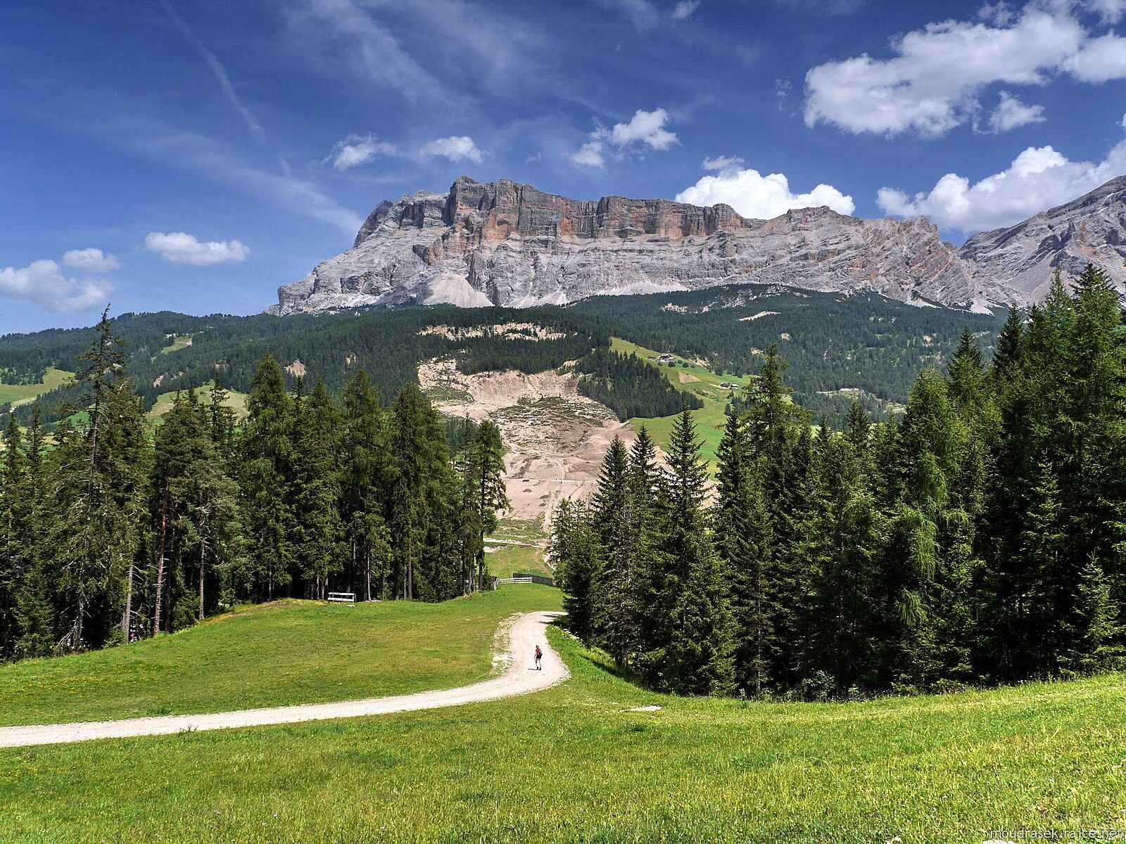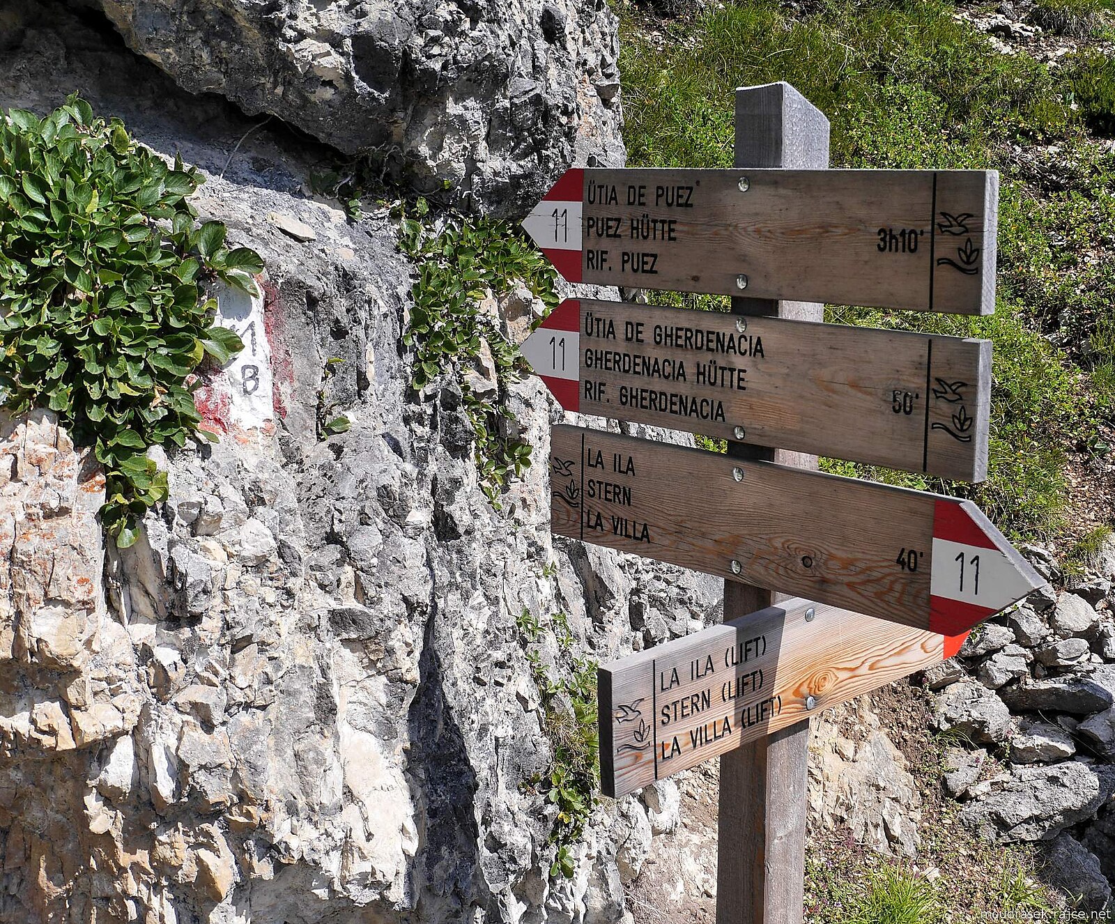 Pěšina č.11B obchází kompaktní masiv Gherdenaccia, cestou najdete lavičky