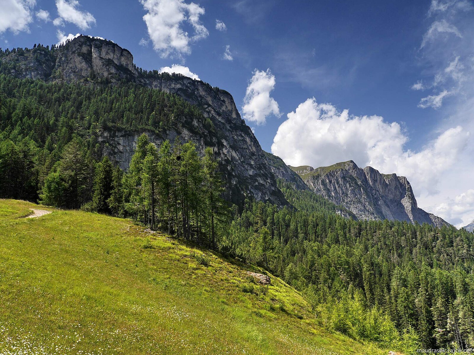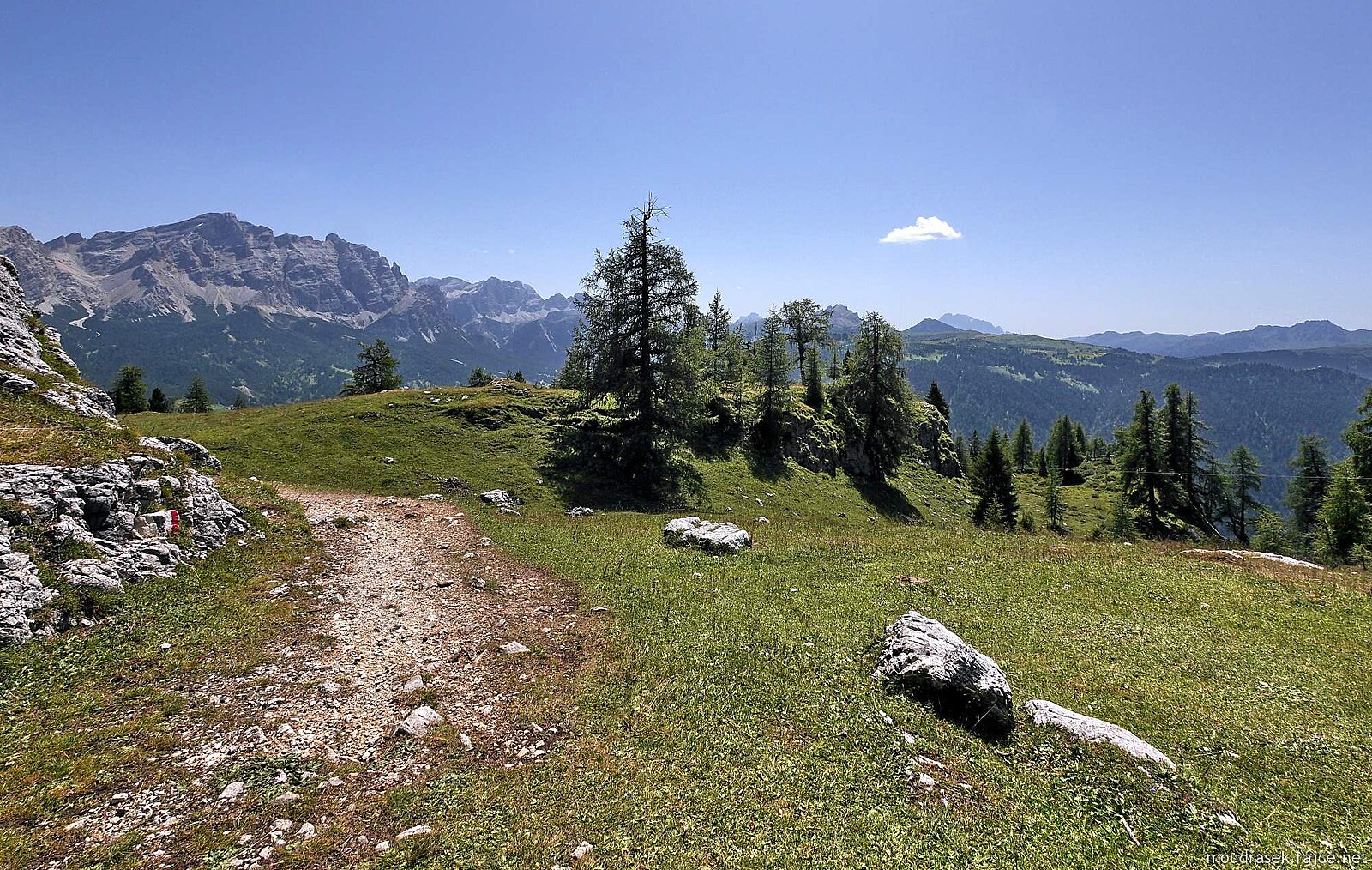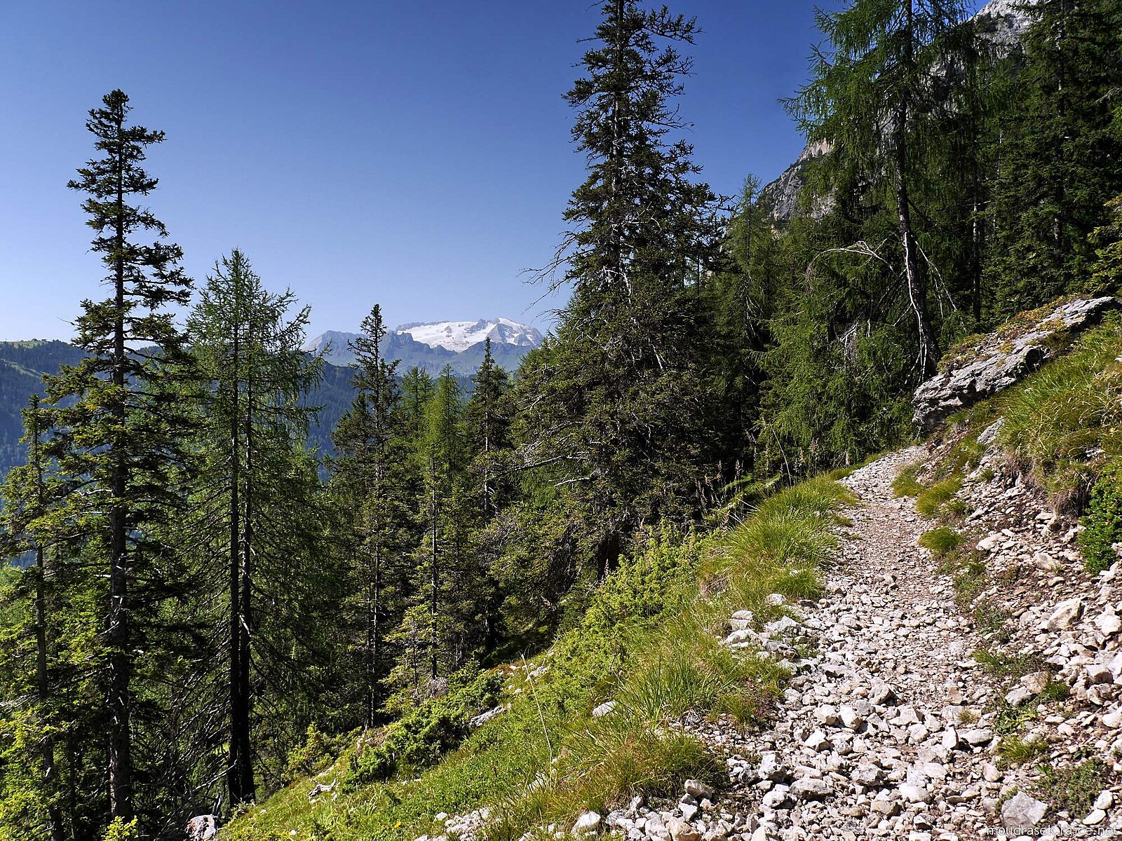 Pěšina č.11B obchází kompaktní masiv Gherdenaccia, cestou najdete lavičky