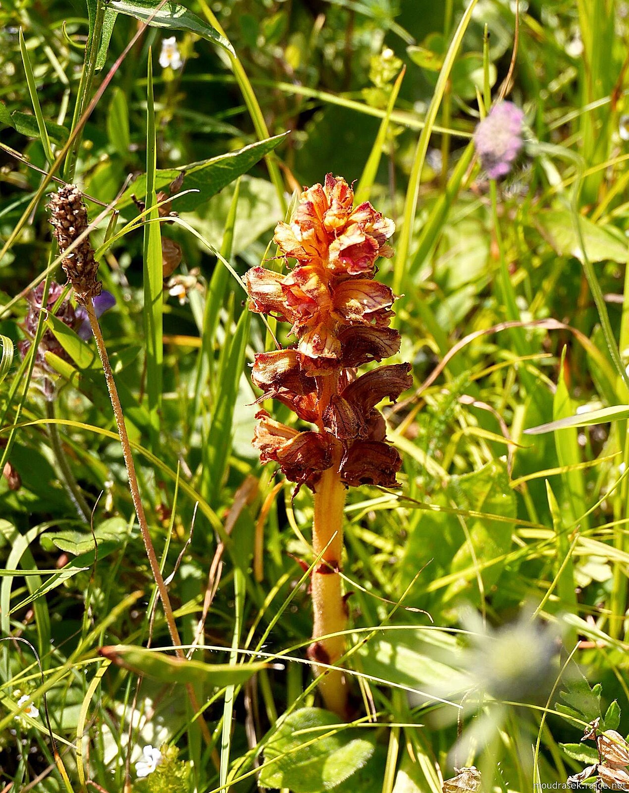 Parazitická orchidej orobancha, která zcela postrádá chlorofyl