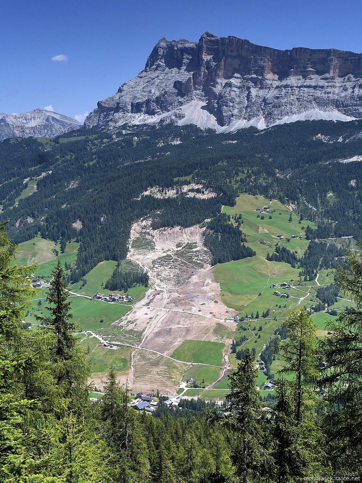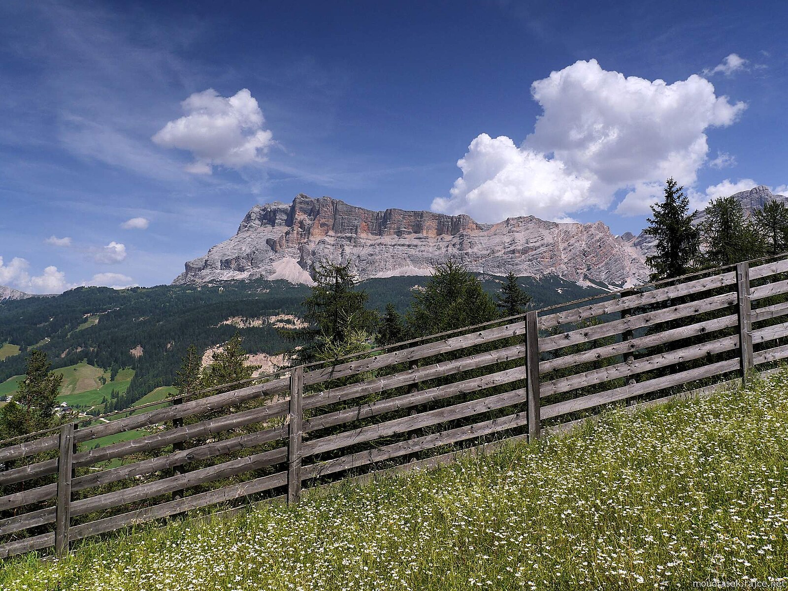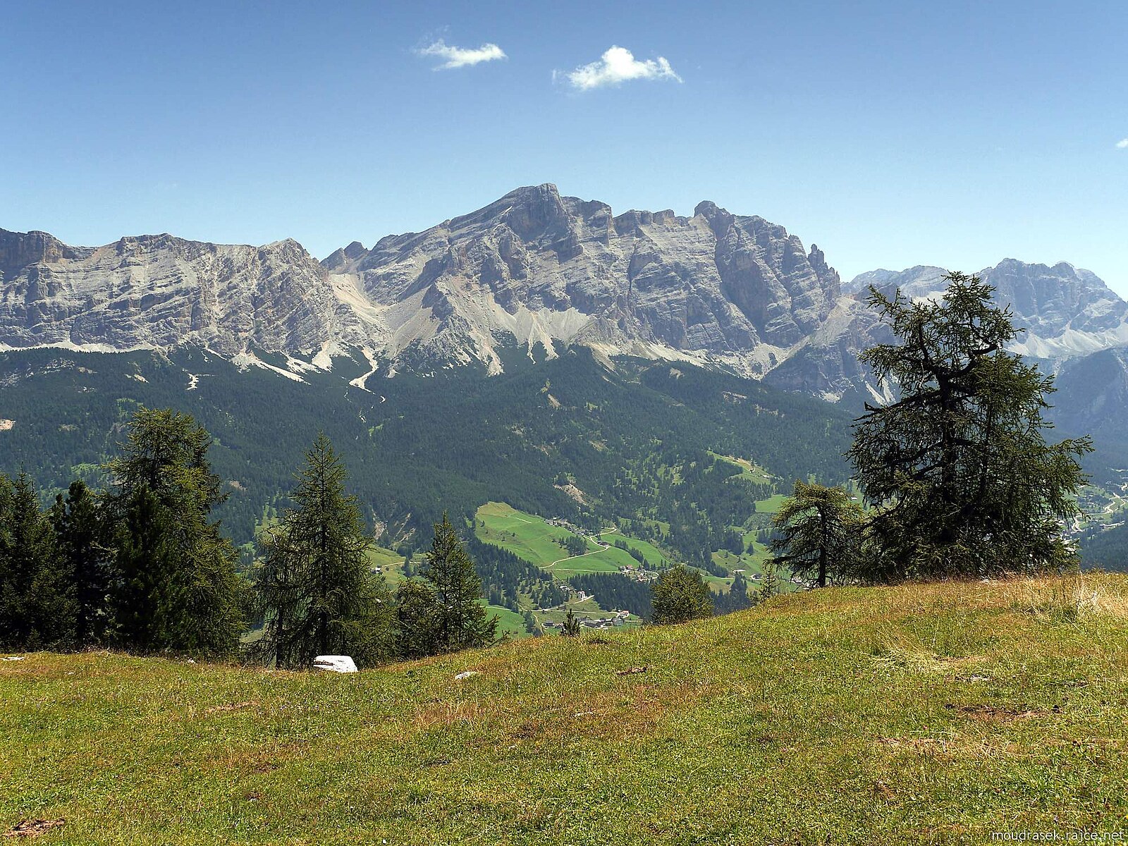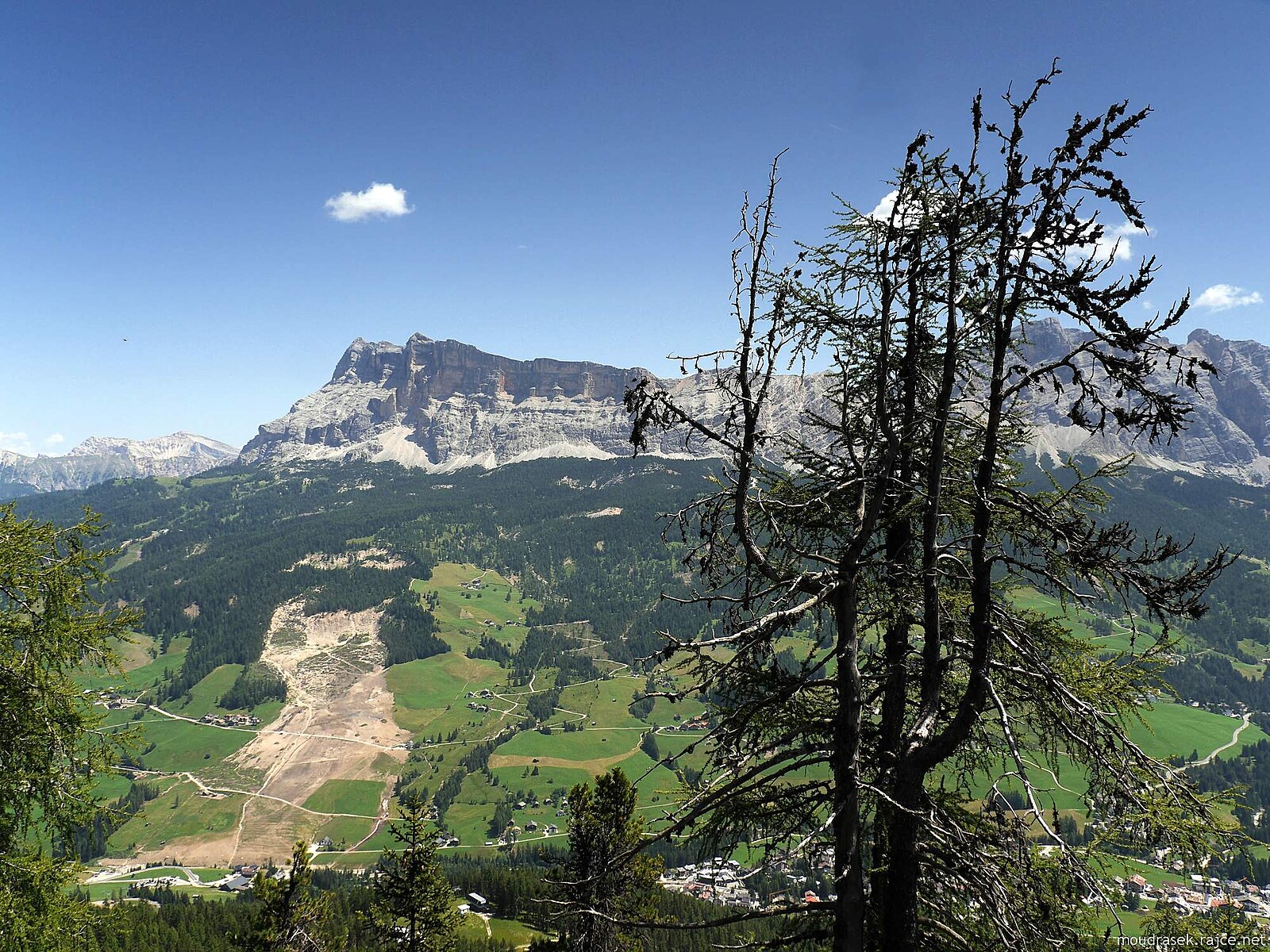 Lavarela a Conturines nad údolím Badia, vpravo navazují štíty Fanes