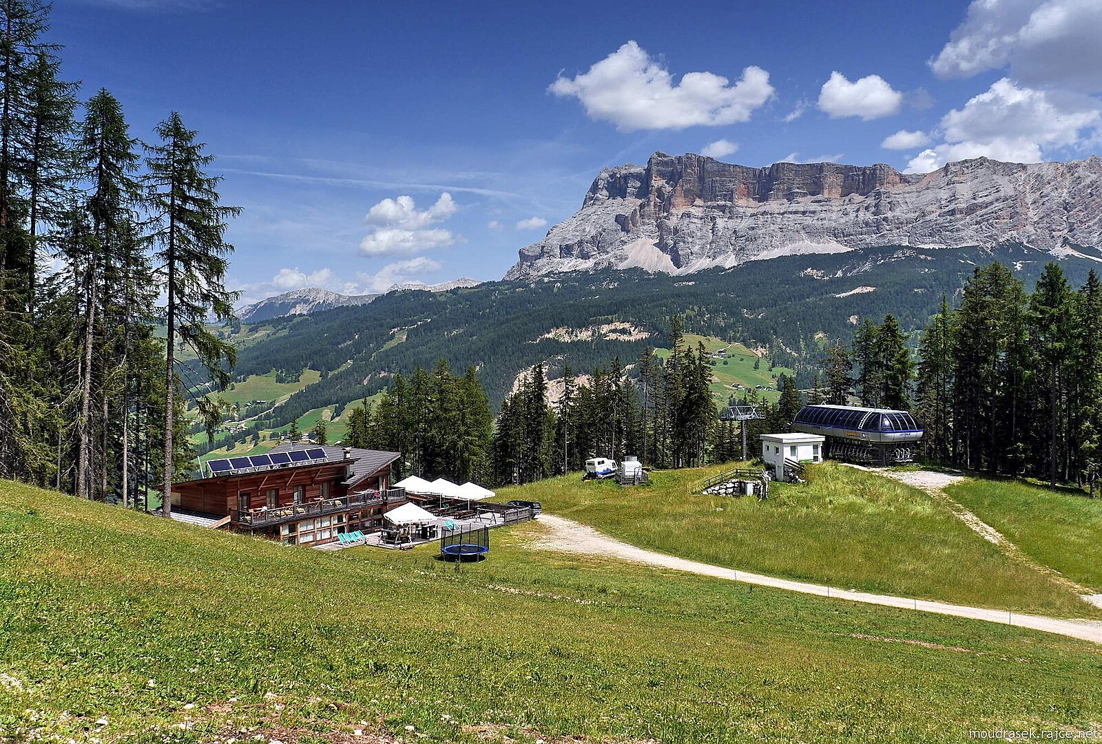 Odbočka pro cyklisty ze stezky č.5 poblíž horní stanice lanovky Gherdenacia