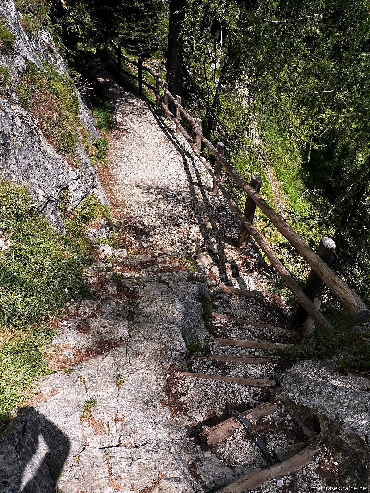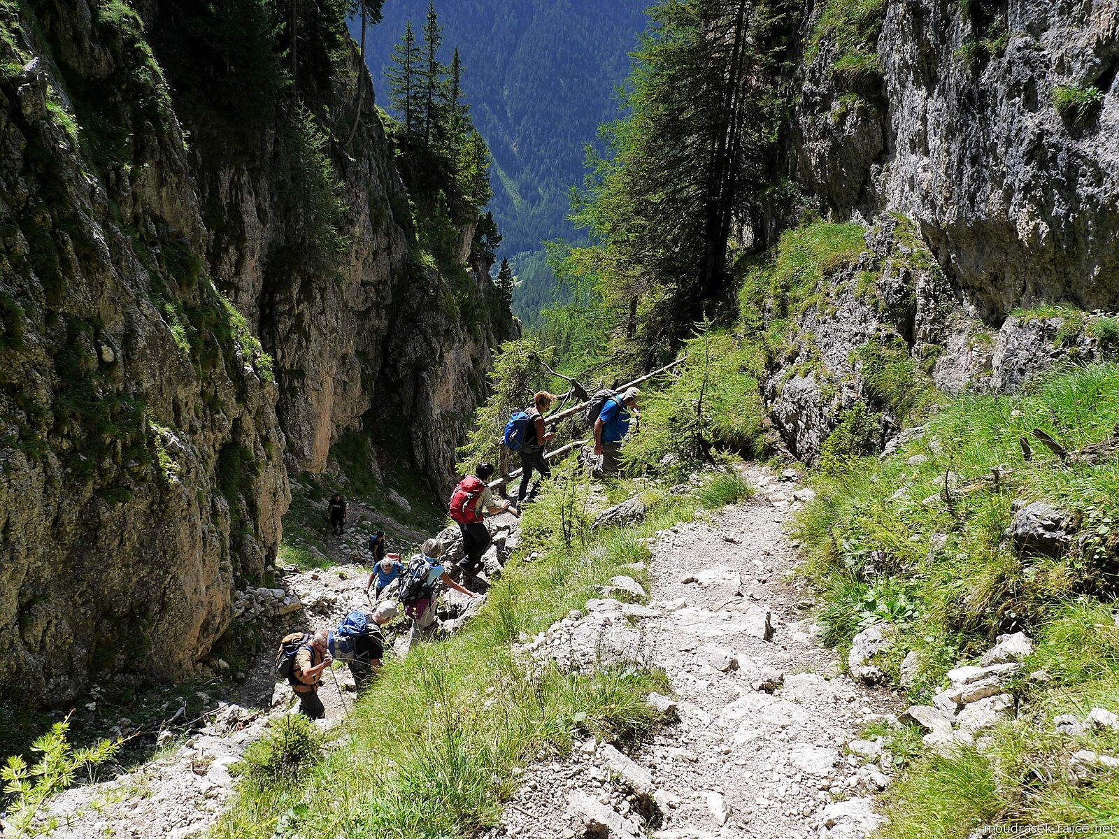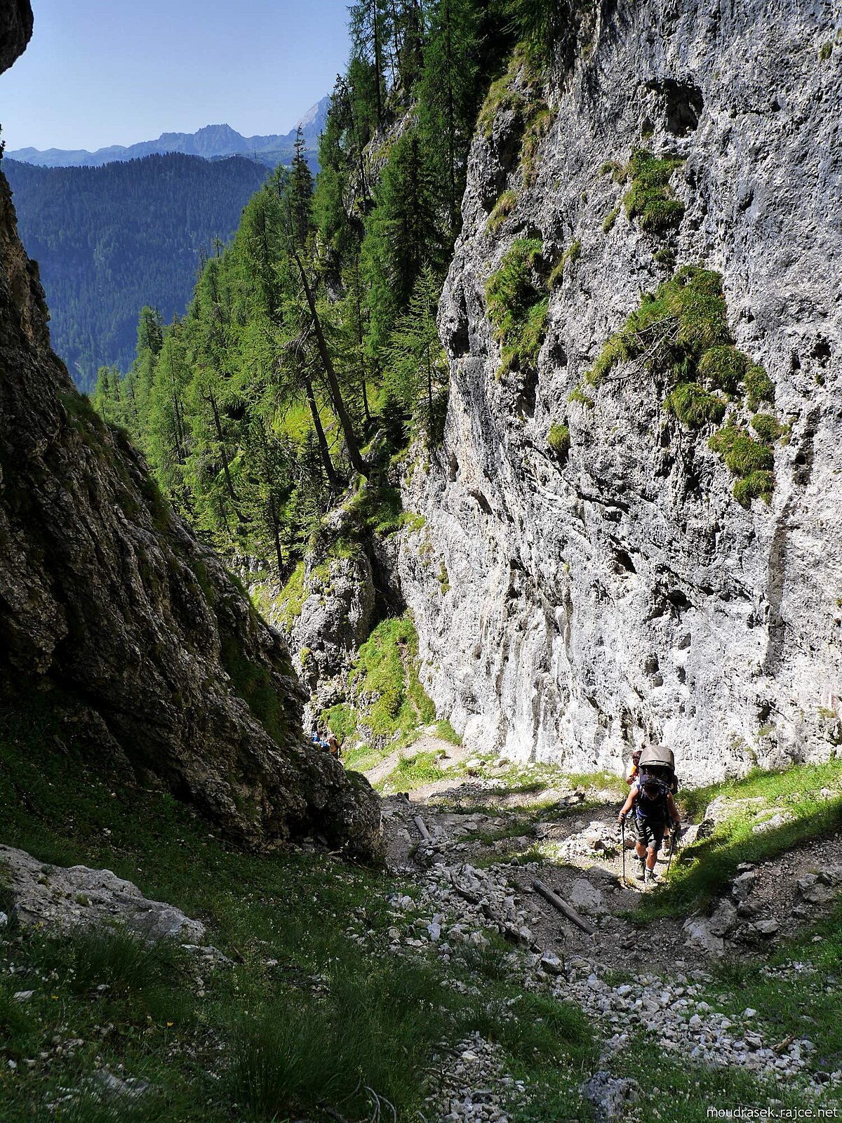 Výhled na Setsass, dole pěšina č.11 klikatící se horní částí průrvy