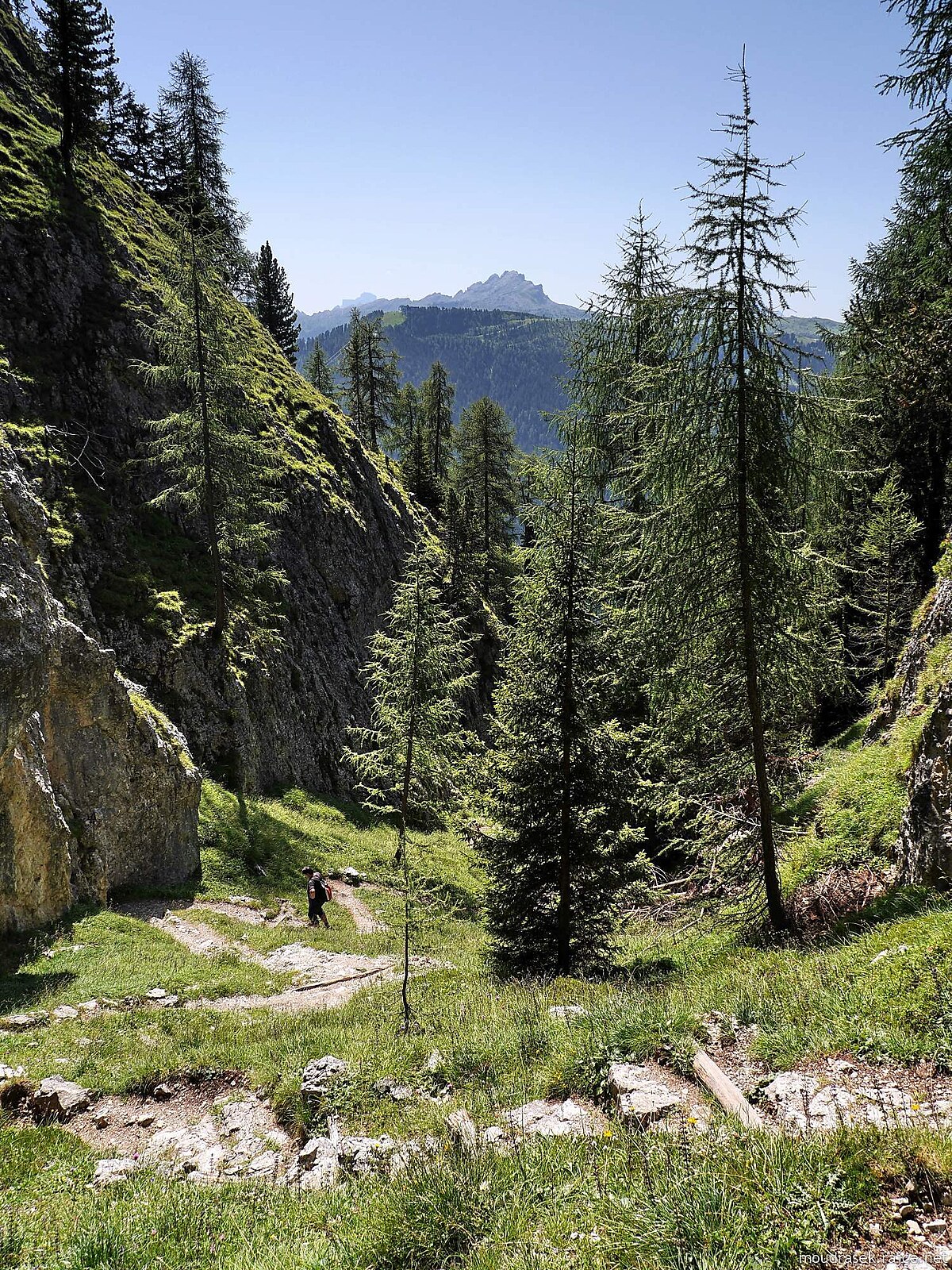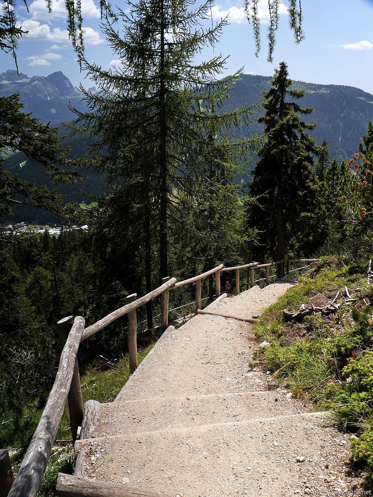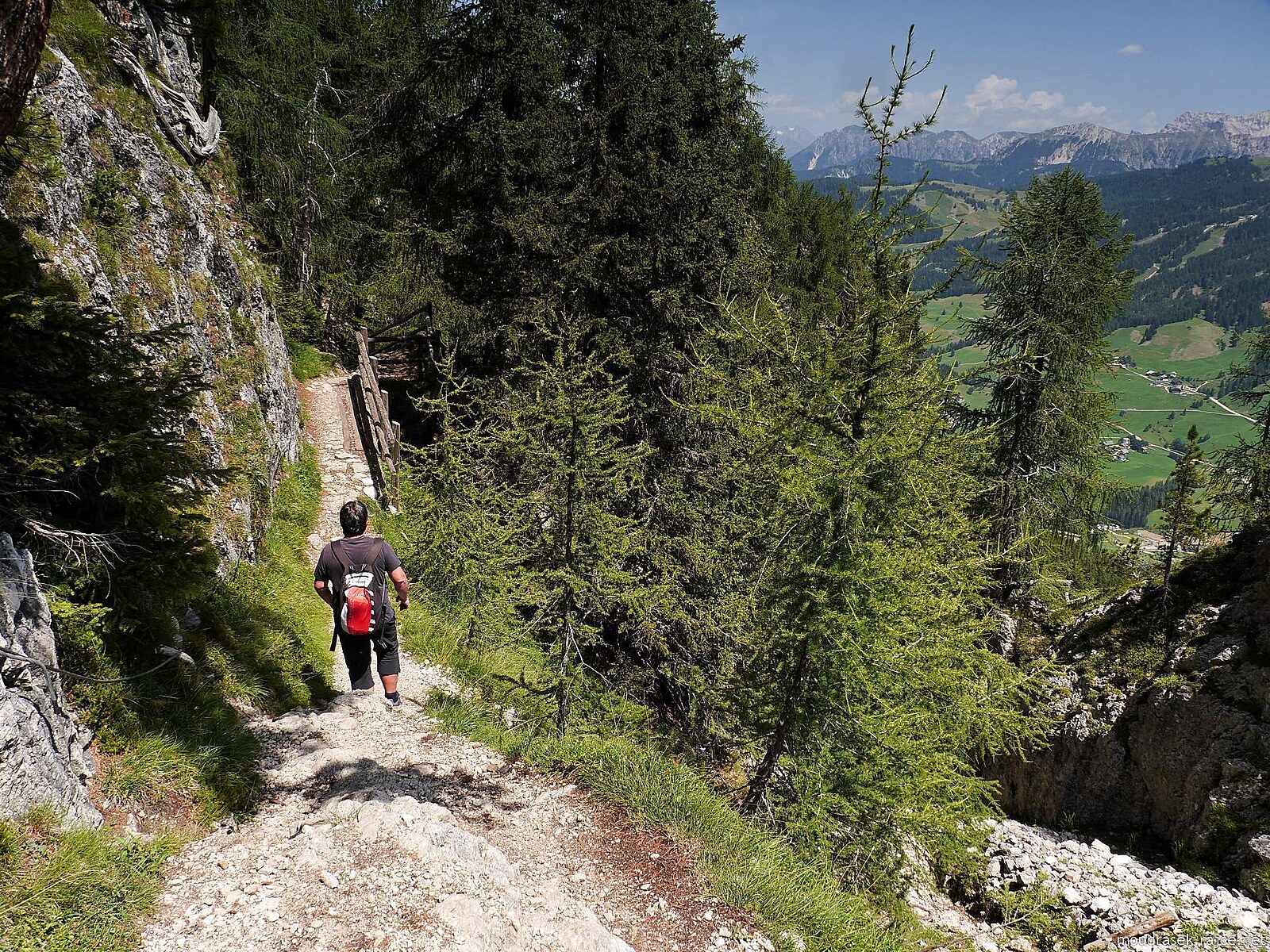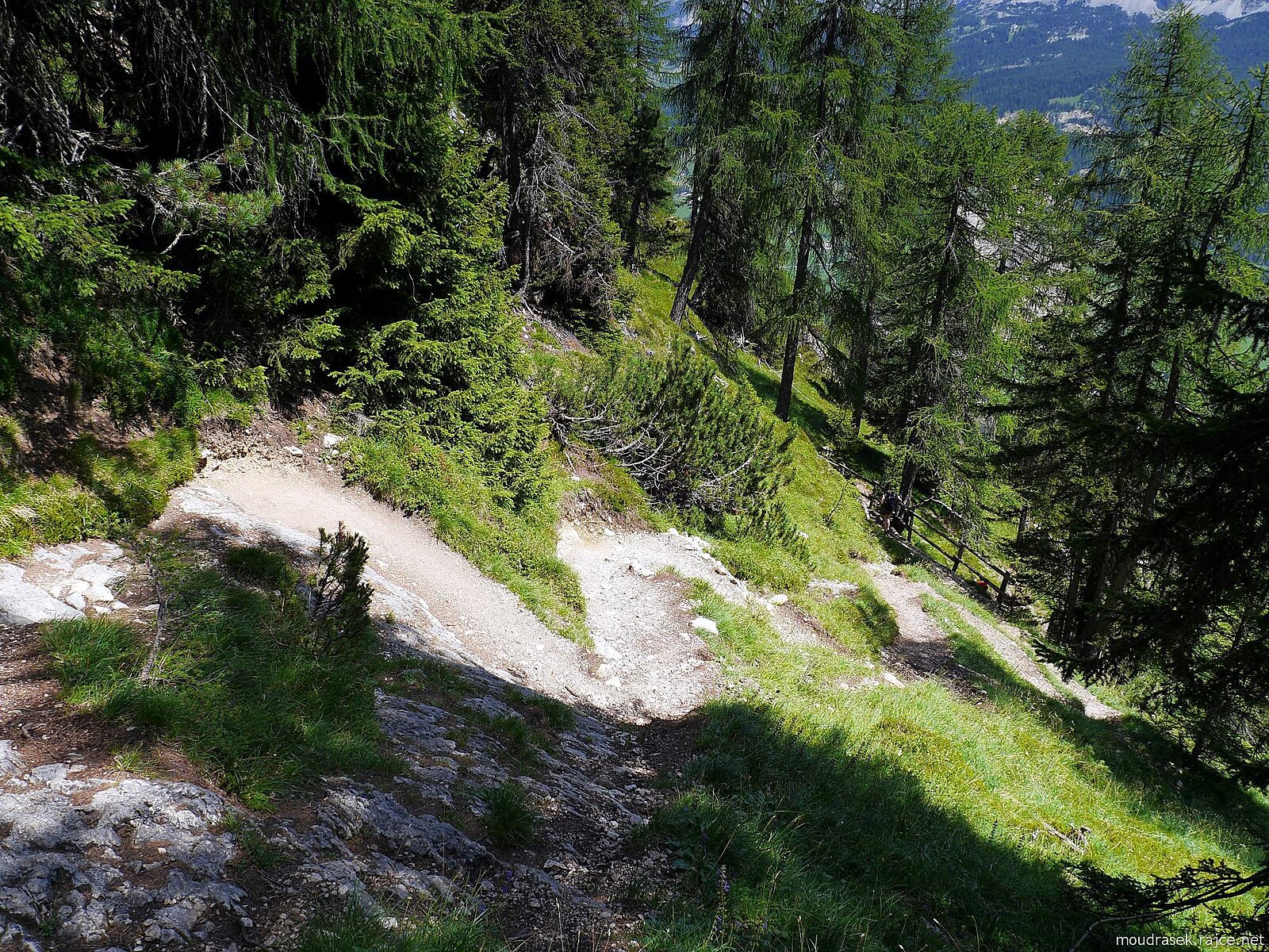 Závěr klesání do Val Badia, na obzoru Kreuzkofel