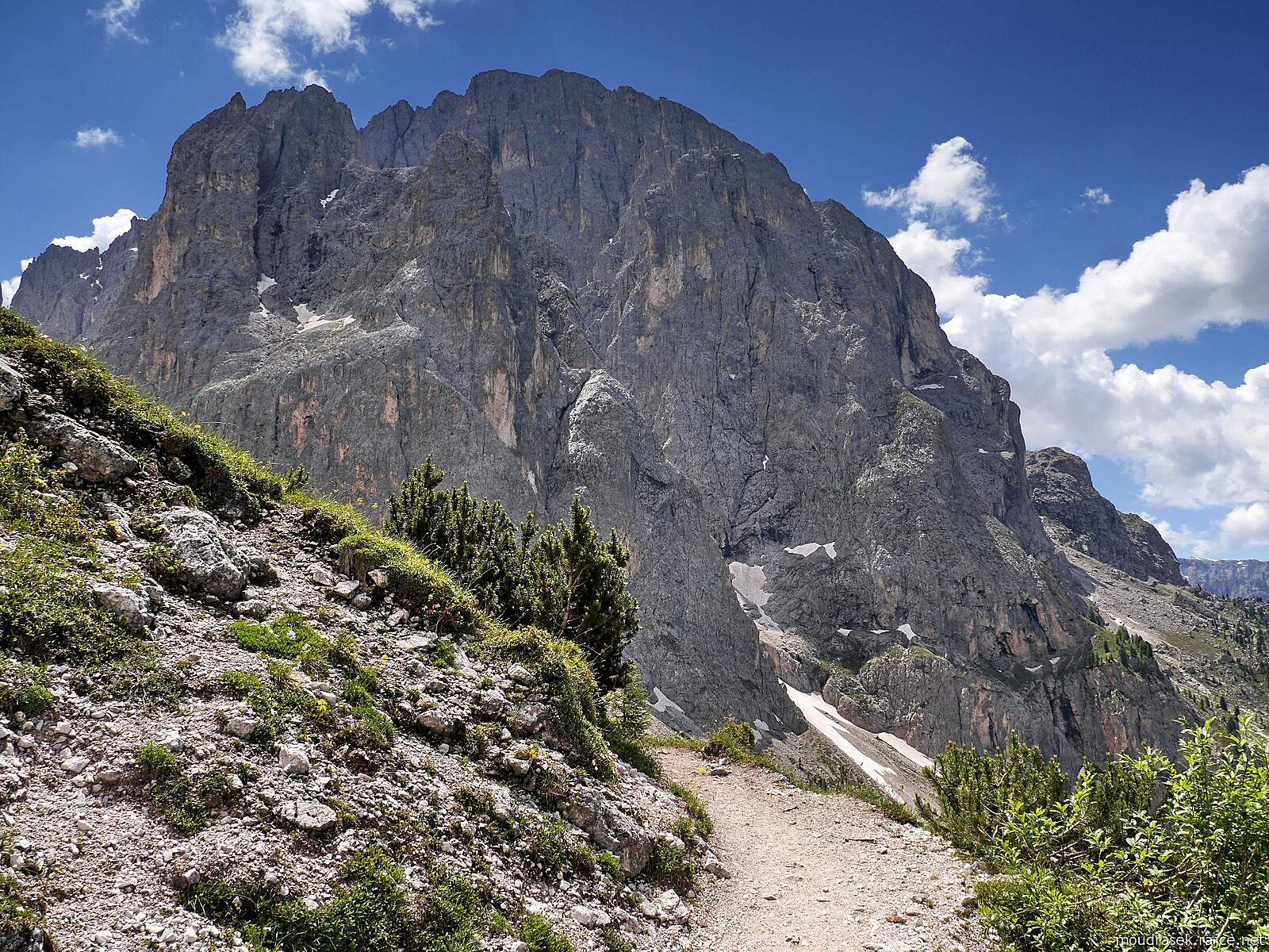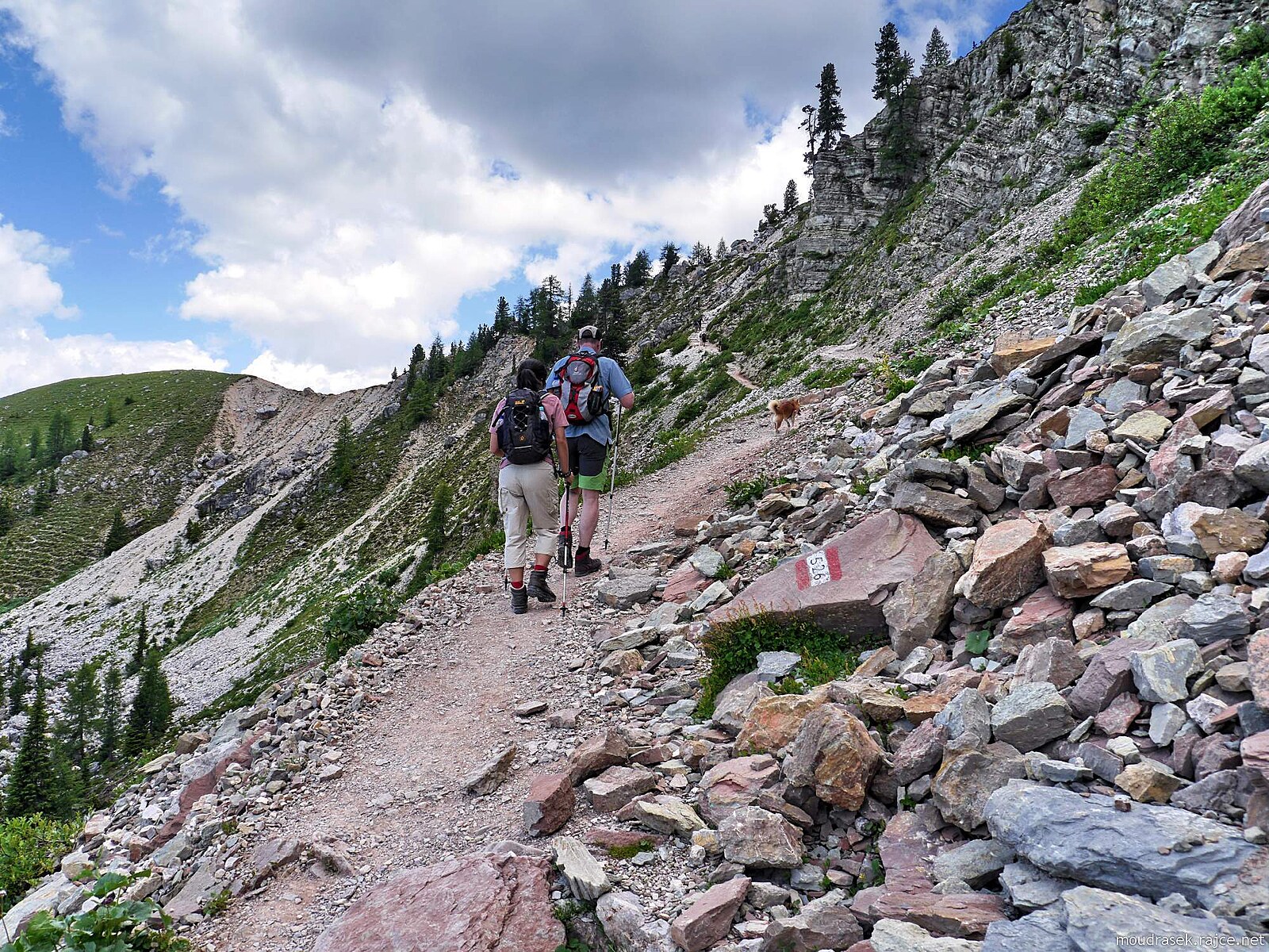 Stezka č.527 pod Sasso Piatto, v pozadí Schkern / Sciliar