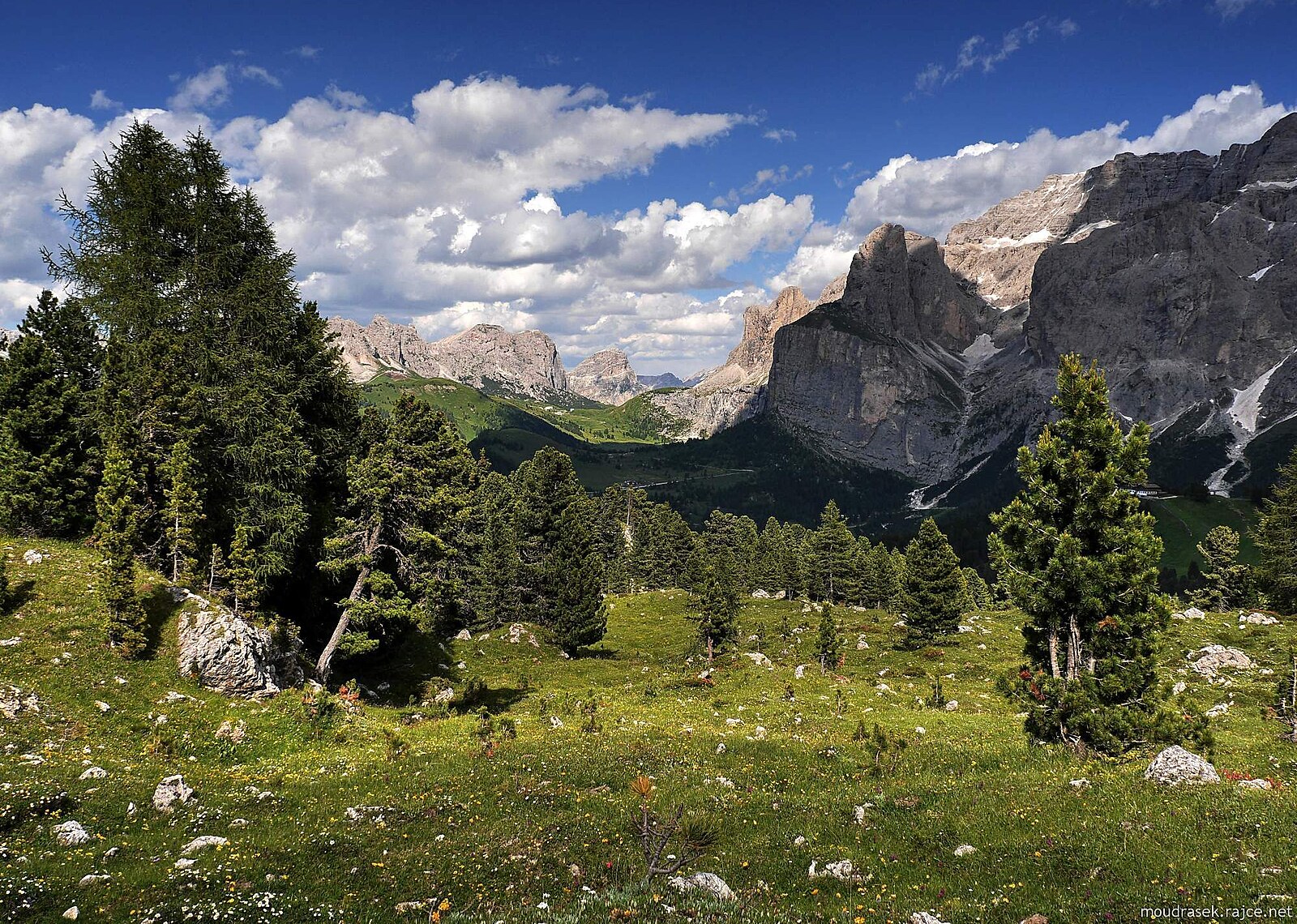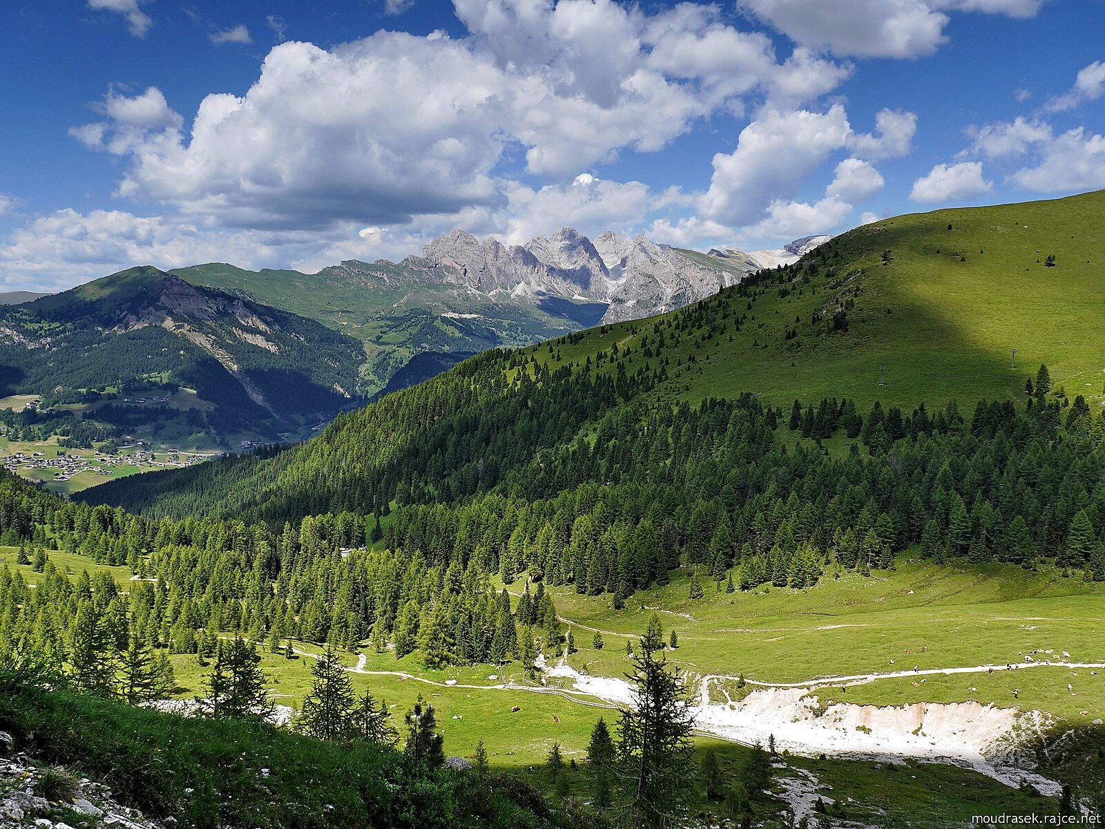 Výhked na Secedu, Fermedu, sass Rigais, Furchetu a Val Gardena