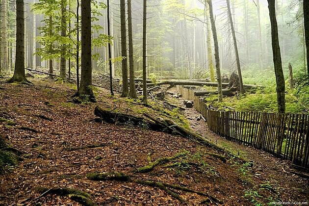 Oplocení pralesa a padlé stromy