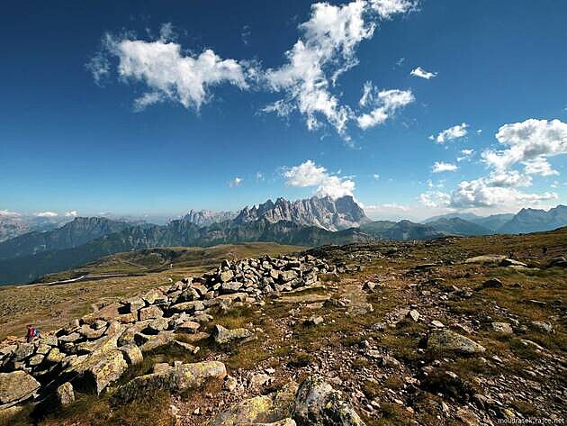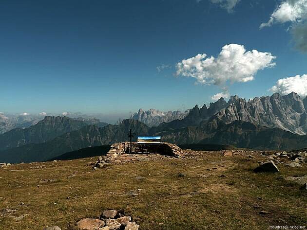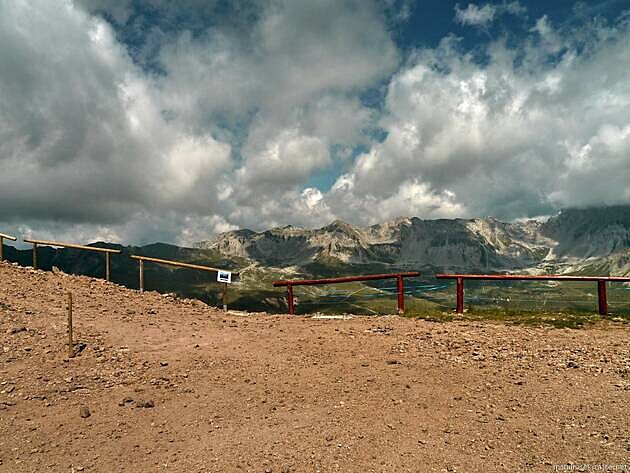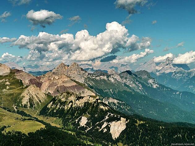 ....to všechno a ještě trochu navíc nabízí vyhlídky z oblého vrcholu Col Margherita (2 545 m n.m.) v jižní části Dolomitů (viz MAPA).
