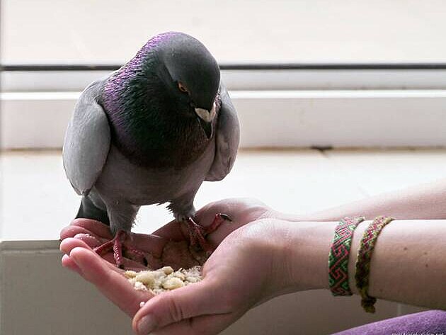 Vzrušeně zamručel a obezřetně se vydal na cestu. Jeden krůček, druhý, třetí – malé kroky pro člověka, ale velké pro holuba, který se právě rozhodl překonat sám sebe.
