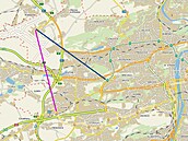 6. Ještě než bylo prodlouženo metro A za Dejvickou, přišlo mi jako nejrozumnější řešení prodloužit k letišti linku B ze Zličína. Patrně by mohla vést z velké části po povrchu, tudíž by byla levná, nejspíš i dost rovná a patrně bez dalších stanic, takže by vlaky metra pěkně frčely. Na mapce je trasa vyznačena fialovou čárou a je dlouhá těsně pod 6 km.