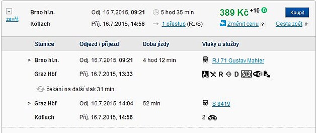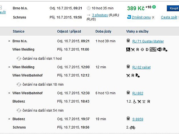 A můžete hledat i jiná spojení. Chcete jet z Brna do Villachu, ale vzít to přes Salzburg? Žádný problém. Také za méně než 400 Kč.