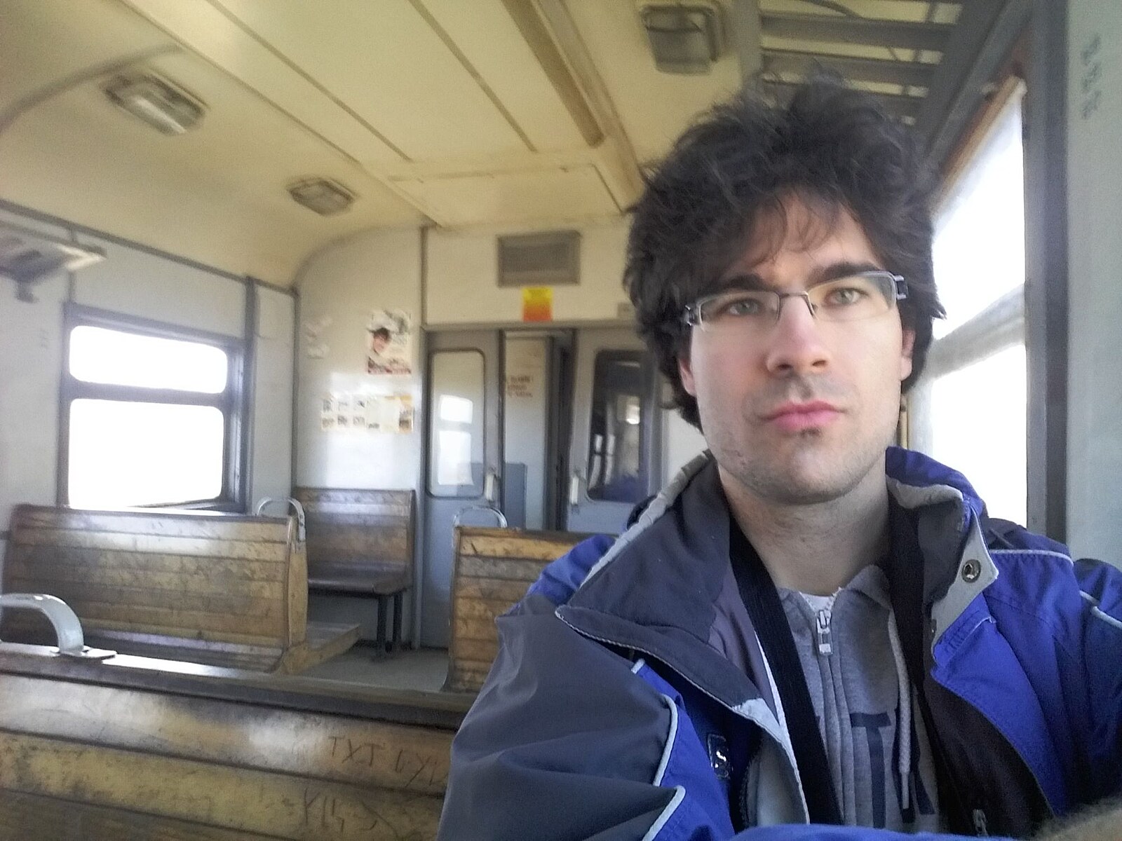 "Selfíčko" ve vlaku dokumentující stav vlaku - například dveře, které nešlo moc dovřít