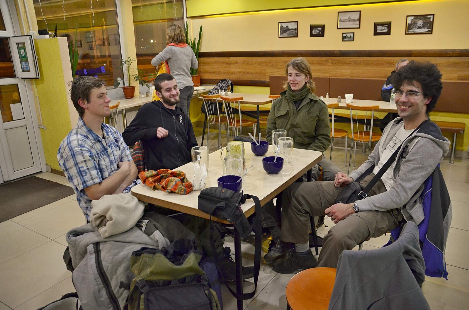 Večeře ve Lvově - zleva Jirka, Jakub, Lukáš a já