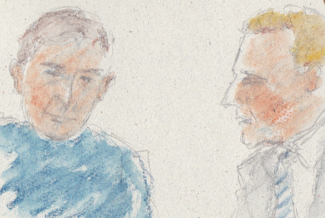 Po chvíli na chodbě mezi nimi proběhne tento rozhovor: