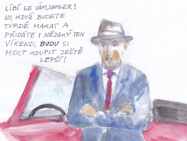 Tak tohle je pan Adolf Amler, zakladatel, generální ředitel a současně jediný zaměstnanec konzultační firmy Alfaga (rozuměj Alfa a Omega). Má toho už hodně za sebou a někdy je trochu blahosklonný. A také rád poučuje (hlavně pana Samlera).