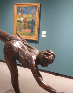 V popředí fotografie obrazu vidíme bronzovou plastiku Edgara Degase „Tanečnice, velká arabeska“