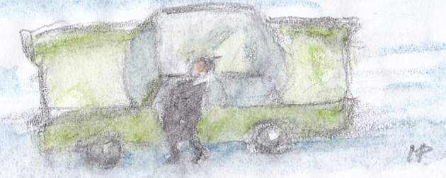 Nakonec zahrozí pěstí a nasedne do auta. Motor škytá. Ale ne a ne naskočit.